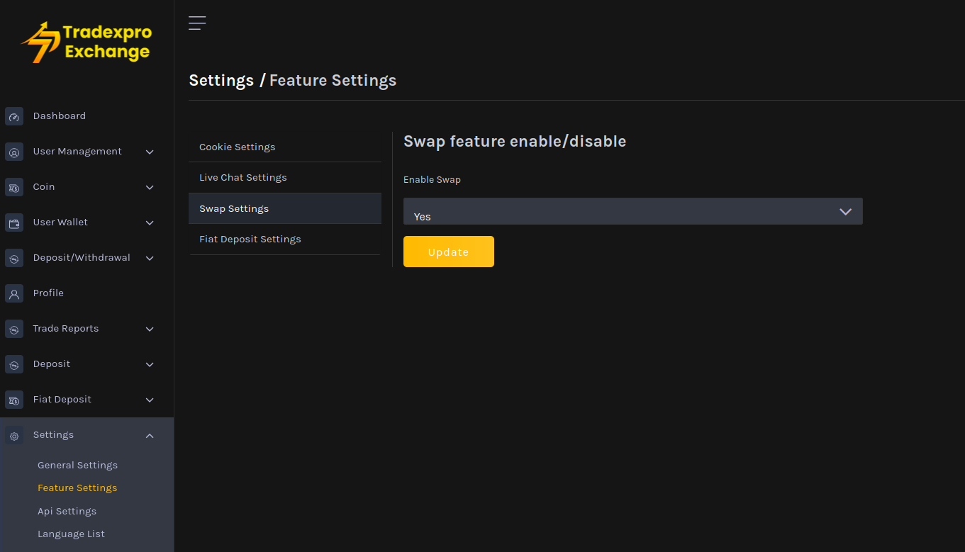 Tradexpro Exchange is a complete crypto coins exchange platform developed with Laravel and next js. It is the best choice to buy, sell or exchange any crypto coin that works via coin payment or bitcoin fork node. It will connect with a coin payment merchant account, or also connect with node. Our system is 100% secure and dynamic. It supports all cryptocurrency wallets including Coin Payment, Buy , Sell , Stop Limit, Deposit, Withdrawal, Referral system, and whatever you need. The most attractive feature of this platform is trading. In the trading system, you can place buy and sell orders according to your preferences of coin prices. Beside that, you can check your balance from wallet section. You can also check your buy-sell transaction status, deposit, withdrawal histories.