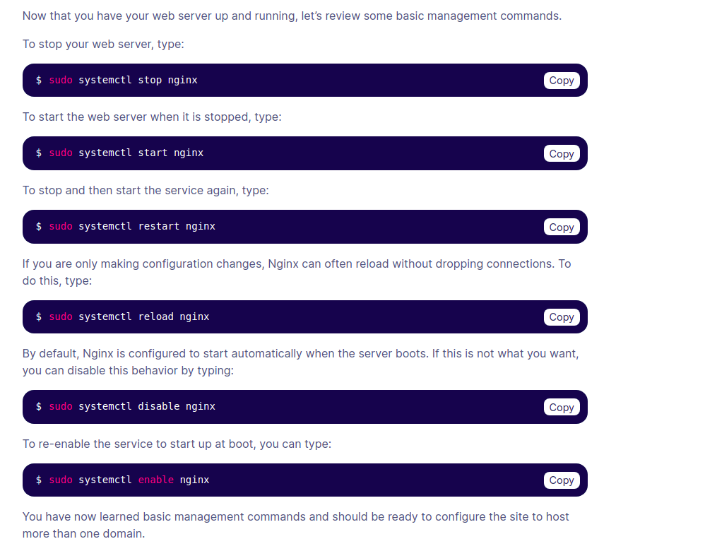 As confirmed by this out, the service has started successfully. However, the best way to test this is to actually request a page from Nginx. You can access the default Nginx landing page to confirm that the software is running properly by navigating to your server’s IP address.
